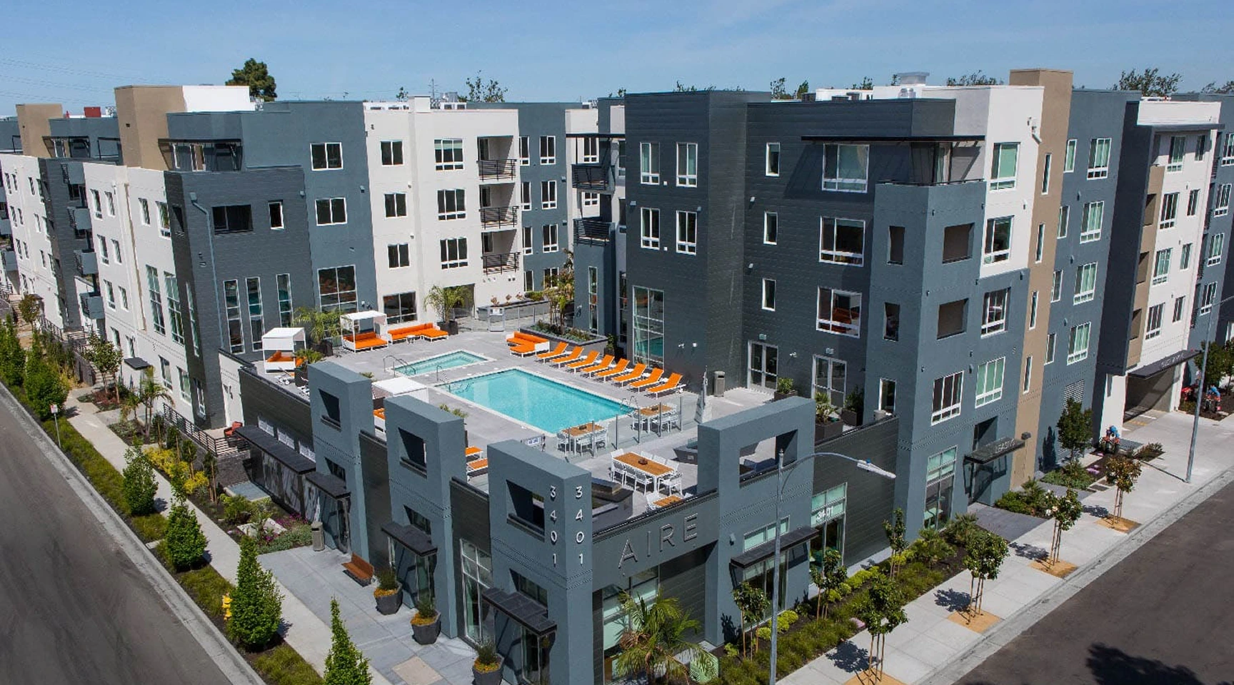 AIRE is a 293-unit apartment community located at 3401 Iron Point Drive in the heart of North San Jose, CA. Situated on 3.7 acres, AIRE is designed with a modern urban exterior to match the luxury European interior unit finishes. The project consists of 67 Studios, 127 One-Bed units, and 99 Two-Bed units and is constructed as a 4-story Type V wood-frame over a 2-story Type I concrete podium.