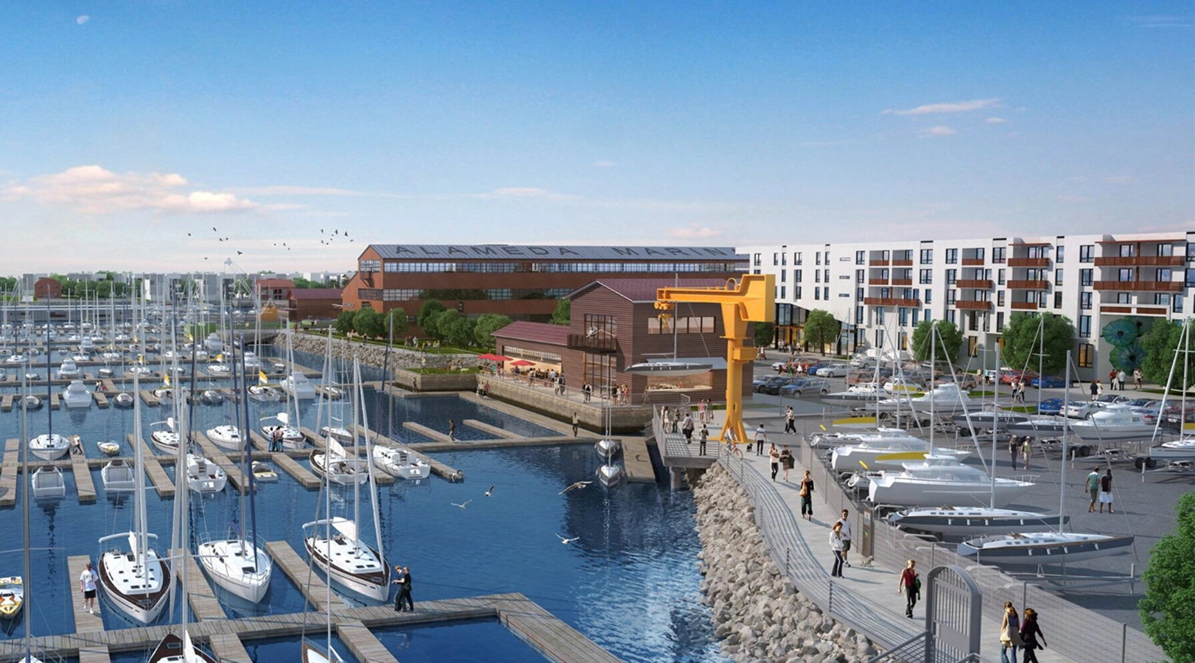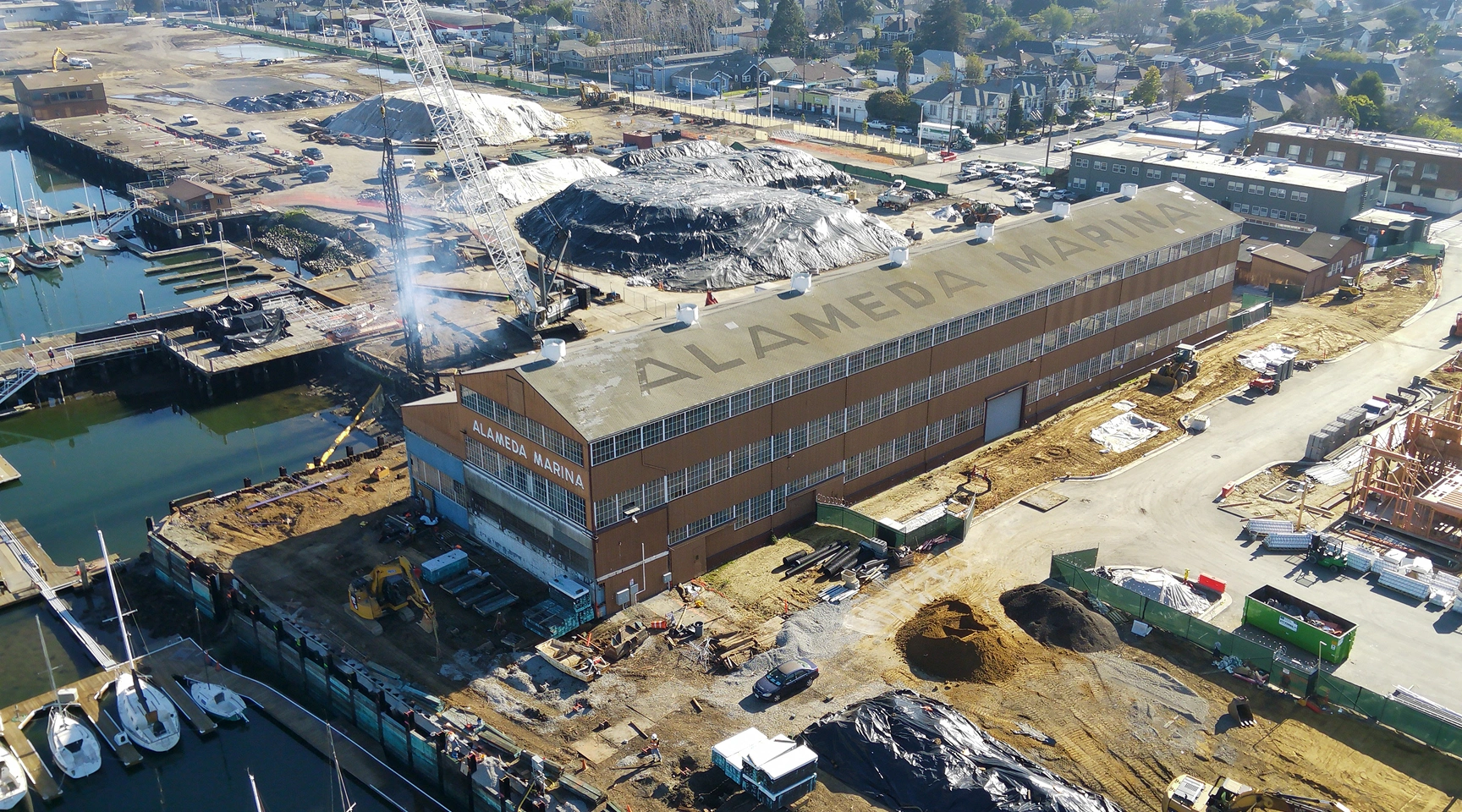 ALAMEDA MARINA is the redevelopment of 44 acres of prime waterfront located within the San Francisco Bay. The development will consist of 760 housing units, 150,000sf of commercial space, as well as a 529-slip marina. Commercial space will be located in individual buildings centered around a Maritime Core and would include the preservation and repurposing of some existing WWII buildings on-site for new and existing maritime businesses.