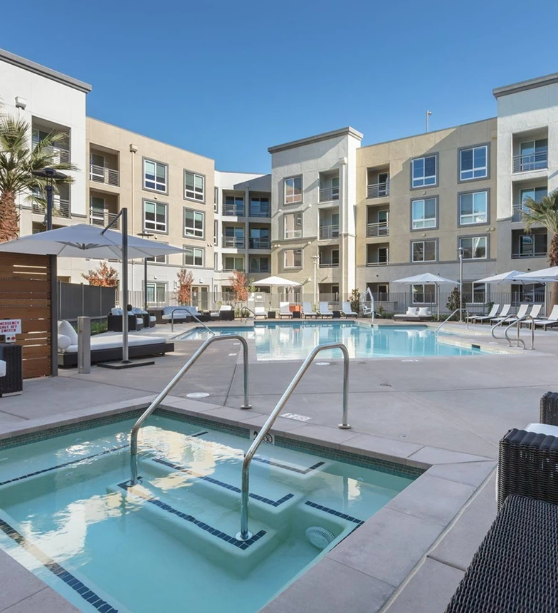 The 6.34-acre parcel consists of 313 market-rate apartment units and 17,000 square feet of commercial/ground-floor retail space. An adjacent parcel houses the affordable component which totals 71 BMR units that were built by Eden Housing. The Project has a wrap design with 4 and 5 stories wrapped around a podium garage and community amenities. Apartment floor plans will include a mix of 20 Studios, 172 One-Bed units, and 121 Two-Bed units. The project is conveniently located within walking distance to the West Dublin/Pleasanton BART Station at the intersection of Interstate 580 and Interstate 680.