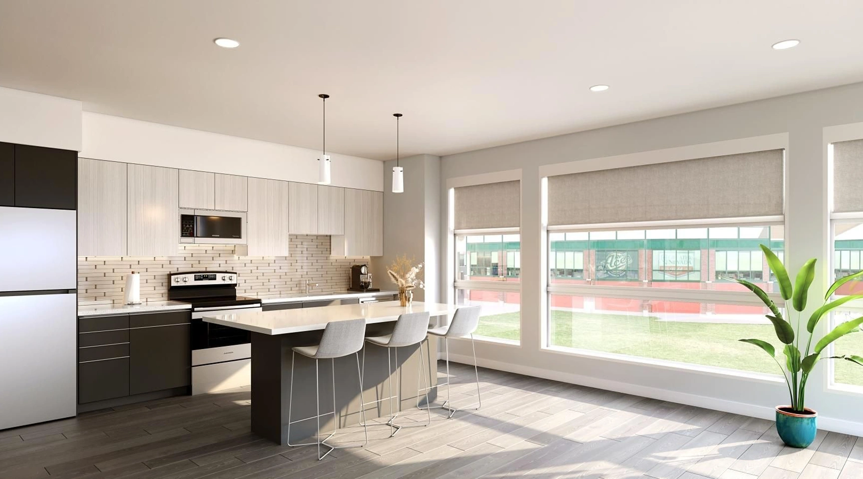The BALLPARK will provide an onsite leasing office for management of residents and future residents. There are 4 interior courtyards with pool, spa, dog runs, BBQ areas, fire pits, and lounge seating. Other amenities in this project include roof deck with views of the stadium with BBQ and fire pits, a fitness room, and club room.