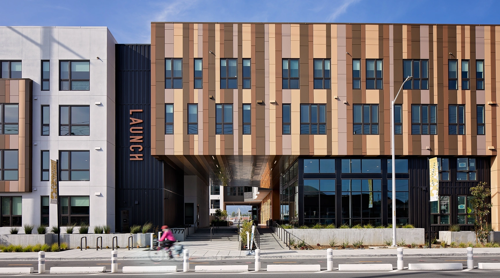 LAUNCH is part of the Alameda Marina master plan located on Clement Avenue in between Schiller and Alameda Marina Drive. The project consists of 368 multifamily dwelling units ranging from studios, 1 bedroom, 2 bedroom, and work/live units. There are 416 off-street parking spots provided for residents and guests to the facilities along with bike parking. The building will be both four and five stories tall, and cover a site area of approximately 170,583 sf. This project consists of 3 types of construction; IA (Garage), Type IIIA and V (Residential).