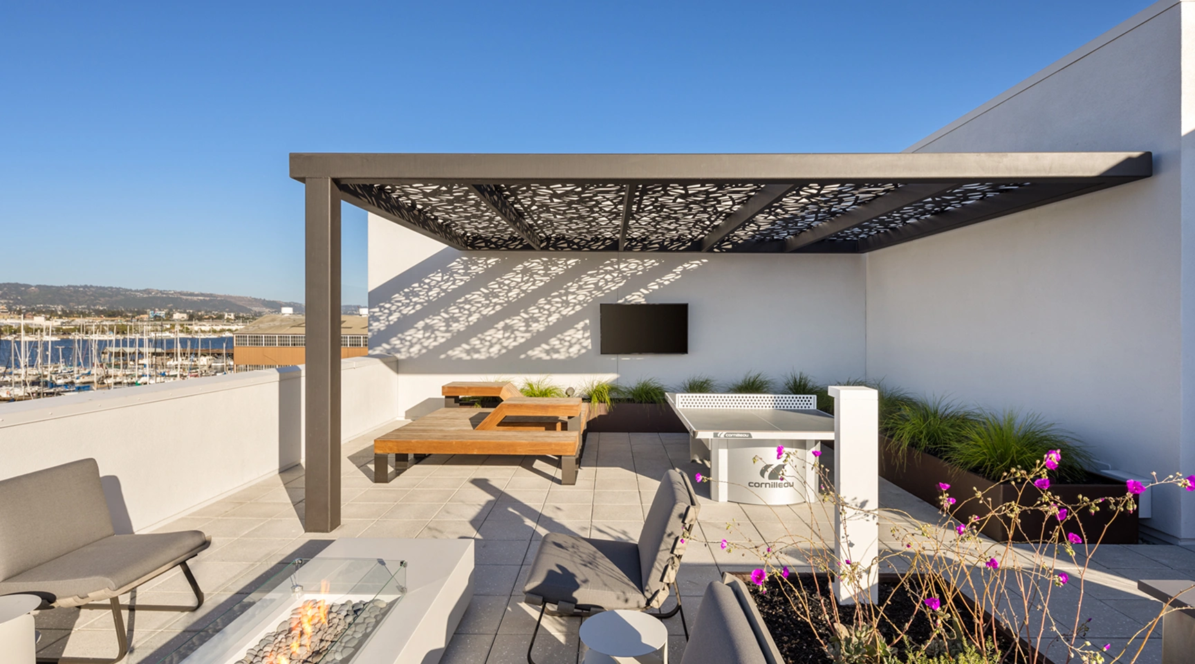 LAUNCH will provide an onsite leasing office for management of residents and future residents. There are 4 interior courtyards with pool, spa, dog runs, kitchenettes, fire pits, and lounge seating. Other amenities in this project include roof decks with BBQ and fire pits, a fitness room, and club room.